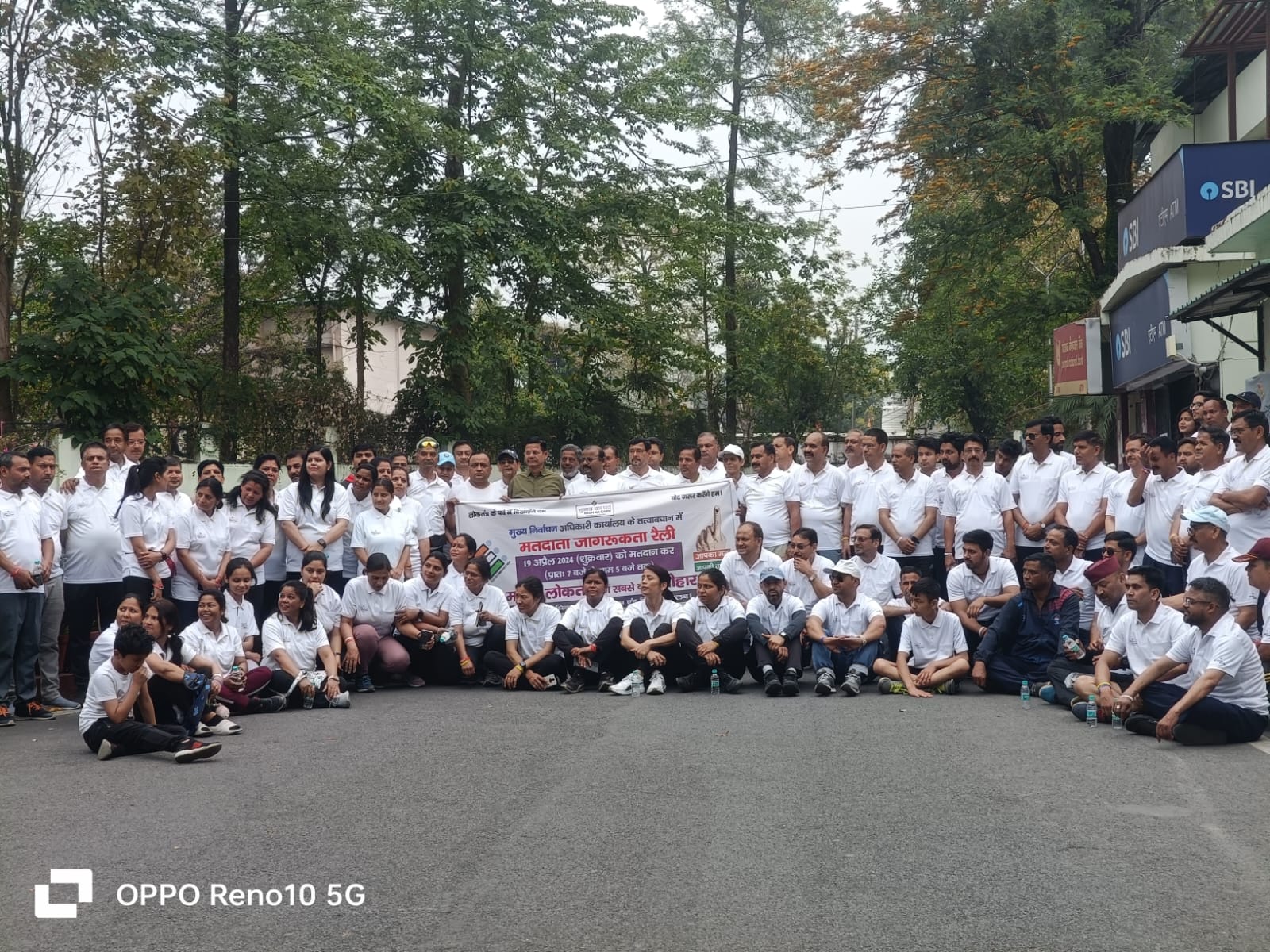।मुख्य निर्वाचन अधिकारी कार्यालय उत्तराखंड एवं सचिवालय एथलीट और फिटनेस क्लब की तत्वावधान में सचिवालय एटीएम चौक से घंटाघर तक मतदाता जागरूकता रैली निकाली गई । जो की परेड ग्राउंड पुलिस मुख्यालय होते हुए सचिवालय में समाप्त हुई ।जिसमें सचिवालय परिवार एवं उनके परिजनों ने लगभग 200 की सख्या प्रतिभागियों ने प्रतिभाग किया। रैली को मुख्य निर्वाचन अधिकारी उत्तराखंड डॉक्टर श्री बी0वी0 आर0सी0 पुरुषोत्तम जी द्वारा हरी झंडी दिखाकर रवाना किया गया।इस अवसर पर सचिवालय एथलीट और फिटनेस क्लब की अध्यक्ष श्री ललित चंद्र जोशी सचिव श्री राजेंद्र प्रसाद जोशी, कोषाध्यक्ष श्री दिनेश सिंह घिंगा,उपाध्यक्ष श्रीमती रीता कौल, सचिवालय संघ के अध्यक्ष श्री सुनील कुमार लखेड़ा सहित सभी प्रतिभागियों द्वारा अधिक से अधिक संख्या में 19 अप्रैल 2024 को अधिक से अधिक संख्या में मतदान करने का आवाहन किया गया