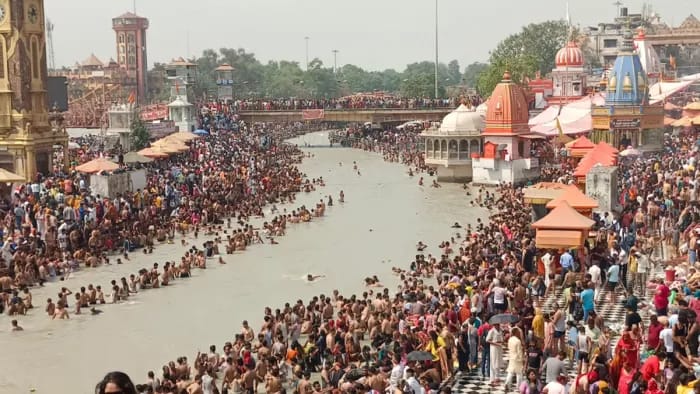 गंगा दशहरा स्नान पर्व के मौके पर हरिद्वार में गंगा स्नान करने के लिए श्रद्धालुओं की भारी भीड़ उमड़ पड़ी. बड़ी संख्या में श्रद्धालुओं ने हर की पौड़ी में स्नान किया. मान्यता है कि आज के दिन ही गंगा धरती पर हरिद्वार के ब्रह्मकुंड में आईं थी और भागीरथ के पुरखों का उद्धार किया था. इसलिए हर की पौड़ी में आज के दिन ब्रह्म कुंड में स्नान का महत्व माना जाता है. वहीं पुलिस प्रशासन ने संपूर्ण मेला क्षेत्र को 3 सुपर ज़ोन, 10जोन और 26सेक्टर में विभाजित किया है.मान्यता है कि राजा सगर के पुत्रों के उद्धार करने के लिए राजा भागीरथ हजारों साल तपस्या करके गंगा को स्वर्ग लोक से धरती पर लाये थे. आज के दिन ही भागीरथ के प्रयास से गंगा शिव की जटाओं से होती हुई जब धरती पर आई और वह ब्रह्मकुंड पर पहुंची थी. इसलिए माना जाता है कि गंगा जब धरती पर अवतरित हुई तब 10 तरह के ग्रह योग मौजूद थे.*श्रद्धालुओं ने लगाई आस्था की डुबकी*:गंगा दशहरा के मौके पर हरिद्वार में स्नान करने वाले श्रद्धालुओं की भारी भीड़ उमड़ पड़ी. आधी रात श्रद्धालुओं का जत्था गंगा स्नान करने के लिए पहुंचने लगा. लोगो ने हर की पौड़ी पर ब्रह्मकुंड में डुबकी लगानी शुरू कर दी थी. गंगा स्नान करने आए श्रद्धालुओं का कहना है कि आज के दिन गंगा स्नान का बहुत महत्व है. गंगा दशहरा पर गंगा में डुबकी लगाने से सारे पाप धुल जाते हैं और सभी मनोकामनाओं की पूर्ति होती है. साथ ही दान पुण्य करने से परिवार सुख शांति प्राप्ति होती है.वही पुलिस प्रशासन ने संपूर्ण मेला क्षेत्र को 3 सुपर ज़ोन, 10 जोन और 26 सेक्टर में विभाजित किया गया भारी पुलिस बल लगाया गया है. यात्रियों की संख्या को देखते हुए यातायात प्लान भी लागू किया जाएगा. वहीं एसपी सिटी स्वतंत्र कुमार का कहना है कि देर रात से अब तक 9 लाख श्रद्धालु गंगा स्नान कर अपने घर को लौट चुके हैं. यह गंगा स्नान शाम तक इसी प्रकार जारी रहेगा. हर की पौड़ी ब्रह्मकुंड के अलावा अन्य घाटों पर भी श्रद्धालु लगातार गंगा स्नान कर रहे हैं.