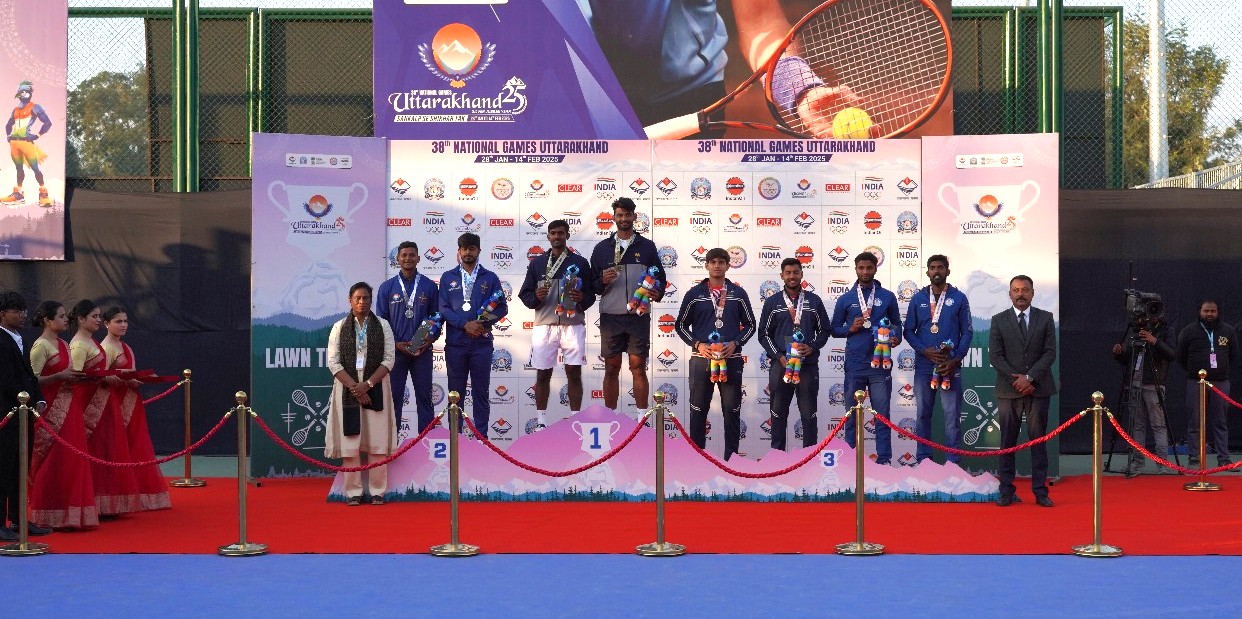 देहरादून के परेड ग्राउंड स्थित टेनिस कोर्ट में 38वें राष्ट्रीय खेल की लॉन टेनिस स्पर्धा के सातवें और अंतिम दिन रोमांचक फाइनल मुकाबले खेले गए। मिश्रित युगल, पुरुष एकल और महिला एकल के फाइनल में शानदार प्रदर्शन देखने को मिला, जहां तमिलनाडु, सर्विसेज और गुजरात ने स्वर्ण पदक पर कब्जा जमाया।