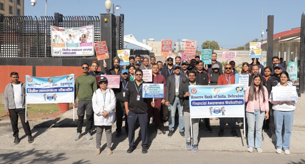 देहरादून : भारतीय रिज़र्व रिजर्व बैंक (आरबीआई) ने वित्तीय साक्षरता के महत्व के बारे में जागरूकता बढ़ाने और व्यक्तियों को सही वित्तीय निर्णय लेने के लिए जानकारी प्रदान करने के उद्देश्य से बीते रविवार को वॉकथॉन का आयोजन किया। इस वॉकथॉन को भारतीय रिज़र्व बैंक, उत्तराखंड के क्षेत्रीय निदेशक श्री अरविंद कुमार ने आईटी पार्क स्थित आरबीआई के कार्यालय से हरी झंडी दिखाकर रवाना किया। भारतीय रिज़र्व बैंक, देहरादून कार्यालय के बड़ी संख्या में कर्मचारियों सहित बैंकिंग ओम्बड्समैन और अन्य वरिष्ठ अधिकारियों ने एक साथ लगभग 6 किमी की दूरी तक पैदल मार्च किए। सुरक्षित बैंकिंग प्रथाओं, जिम्मेदार उधार और डिजिटल अरेस्ट के खतरे आदि से संबंधित संदेश, प्लेकार्ड के माध्यम से प्रसारित किए गए।