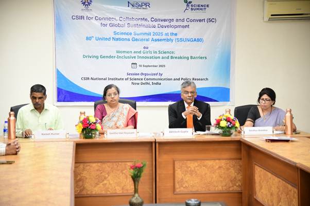 सीएसआईआर-राष्ट्रीय विज्ञान संचार एवं नीति अनुसंधान संस्थान (सीएसआईआर-एनआईएससीपीआर) ने 80वें संयुक्त राष्ट्र महासभा (एसएसयूएनजीए80) में विज्ञान शिखर सम्मेलन 2025 में भाग लिया। इसमें “विज्ञान में महिलाएं और लड़कियां: लैंगिक-समावेशी नवाचार को प्रोत्साहन देना, लैंगिक समानता और बाधाओं को तोड़ना” विषय पर ध्यान केंद्रित किया गया, जिसमें सीएसआईआर एक विषय अध्ययन के रूप में कार्य कर रहा था।